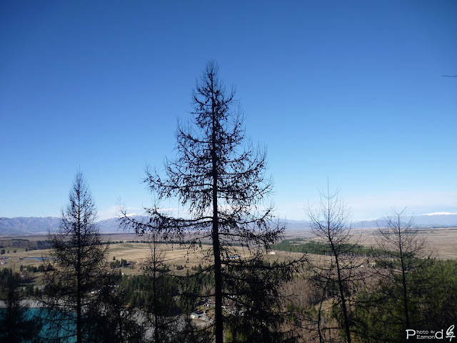 慢慢的走上山,走的越高,沿途的松树就越少,渐渐的,我就走出松树林了。这是在附近已经没有什么树木了,虽然少了没有叶子的松树,但却有着漂亮的雪山在远方哦!!!过了松树林后,一路走上山都可以望到远处那几座壮观的雪山。还是老话一句,纽西兰的风景,不管怎样看或拍,都真的很漂亮,尤其现在是冬季,南岛沿途的雪山景色真的是很漂亮。